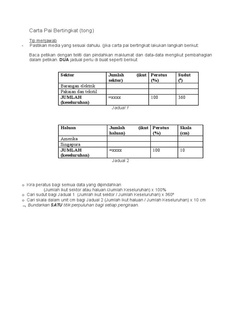 Carta pai tong dan pai bertingkat. Carta pai bertingkat dengan berdasarkan maklumat yang diberikan dalam petikan di bawah ini dan dengan menggunakan cara persembahan carta pai . Bentuk liner kepada bukan liner ; Jadual dan carta pai ( pai mudah, perbandingan dan bertingkat ) ; Pengajaran dan pembelajaran mata pelajaran pengajian am, semester 2.tajuk: